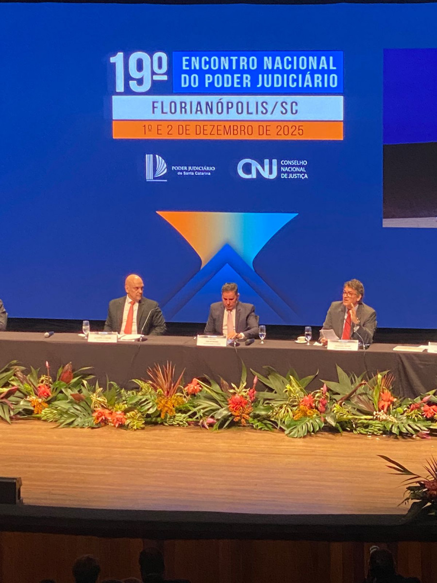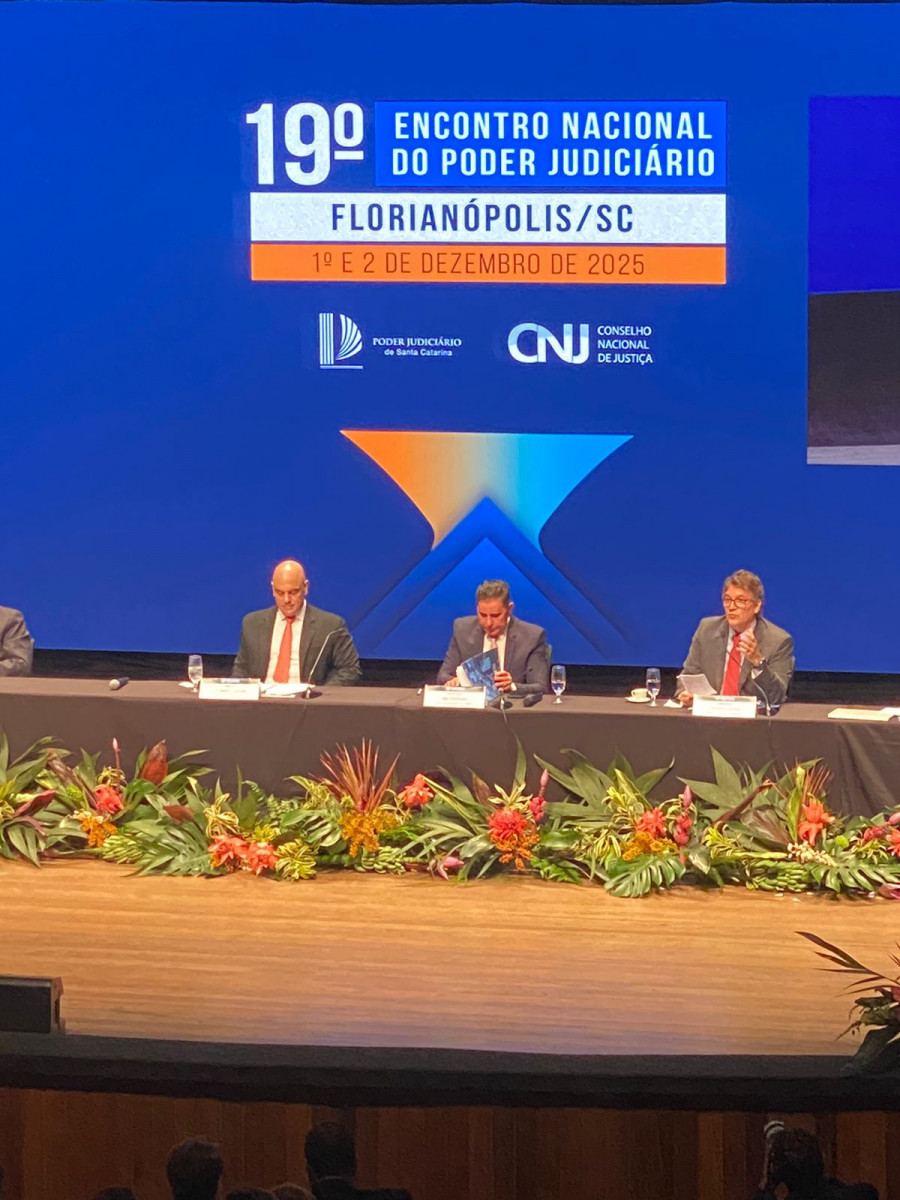 A comitiva da Corregedoria Geral da Justiça participou do 19º Encontro Nacional do Poder Judiciário, promovido pelo Conselho Nacional de Justiça (CNJ), em Florianópolis (SC), durante os dias 1º e 2 de dezembro. O evento tem como objetivo de aferir a Estratégia Nacional do Poder Judiciário, aprovar as Metas Nacionais e Específicas para 2026, além de divulgar os tribunais contemplados com o Prêmio CNJ de Qualidade 2025.