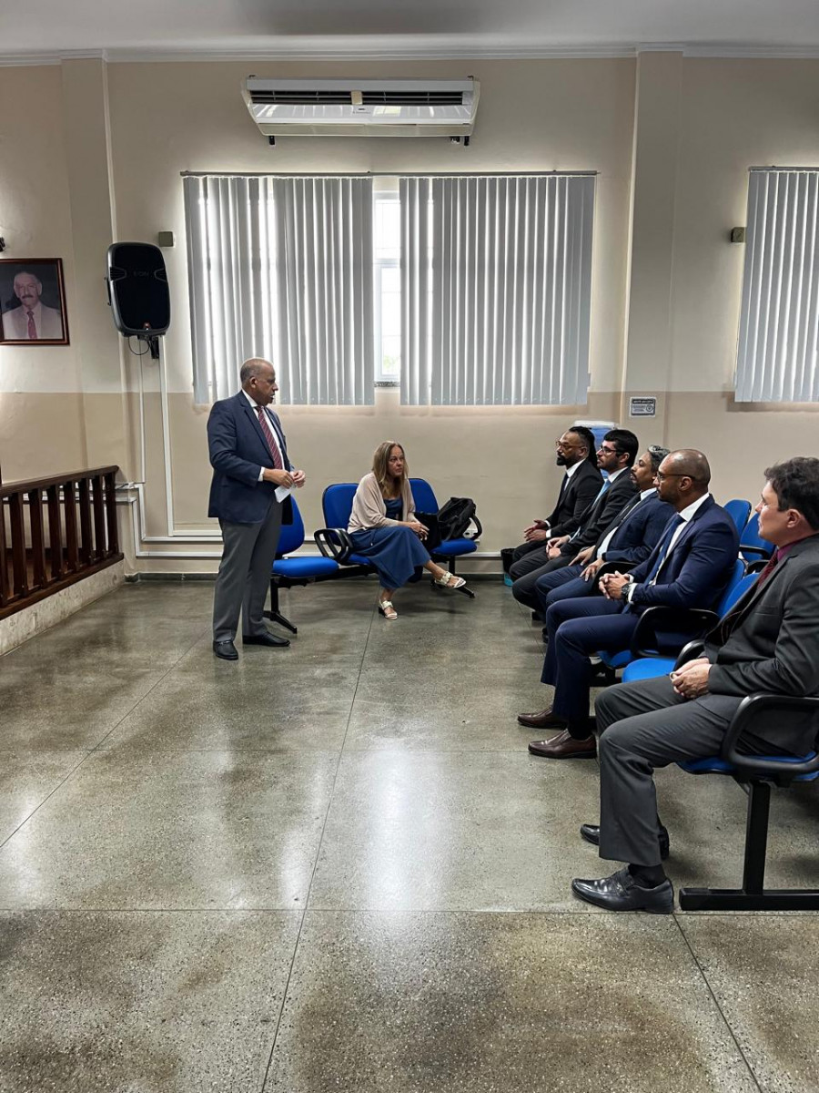A comarca de Jequié recebeu os juízes auxiliares da Corregedoria Geral da Justiça, Dra. Maria Helena Lordelo e Dr. Eduardo Carvalho, para reunião de abertura das atividades de Inspeção Ordinária, iniciadas em 24/11/2025. Durante a encontro, ocorreu ciclo de conversa para tratar sobre as demandas locais e conhecer melhor a realidade das serventias, além de esclarecer dúvidas referentes ao Órgão. As atividades fiscalizatórias serão realizadas em Jequié até a próxima sexta-feira, dia 28.
