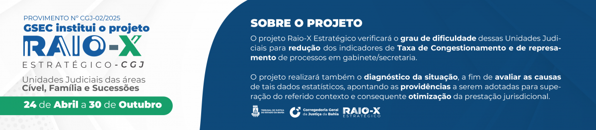 Os projetos estão entre as ações estratégicas estabelecidas nas diretrizes de Gestão 2024-2026 da Corregedoria Geral da Justiça. Visam, principalmente, cumprir com as metas e direcionadores estratégicos do Conselho Nacional de Justiça, bem como atender ao planejamento estratégico do Tribunal de Justiça do Estado da Bahia, alinhado ao Planejamento Estratégico Nacional do Poder Judiciário, especialmente, no tocante aos macrodesafios M.3 – Agilidade e Produtividade da Prestação Jurisdicional e M.1 – Garantia dos Direitos Fundamentais.