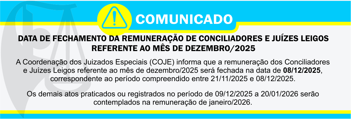 COMUNICADO – DATA DE FECHAMENTO DA REMUNERAÇÃO DE CONCILIADORES E JUÍZES LEIGOS (DEZEMBRO[...]