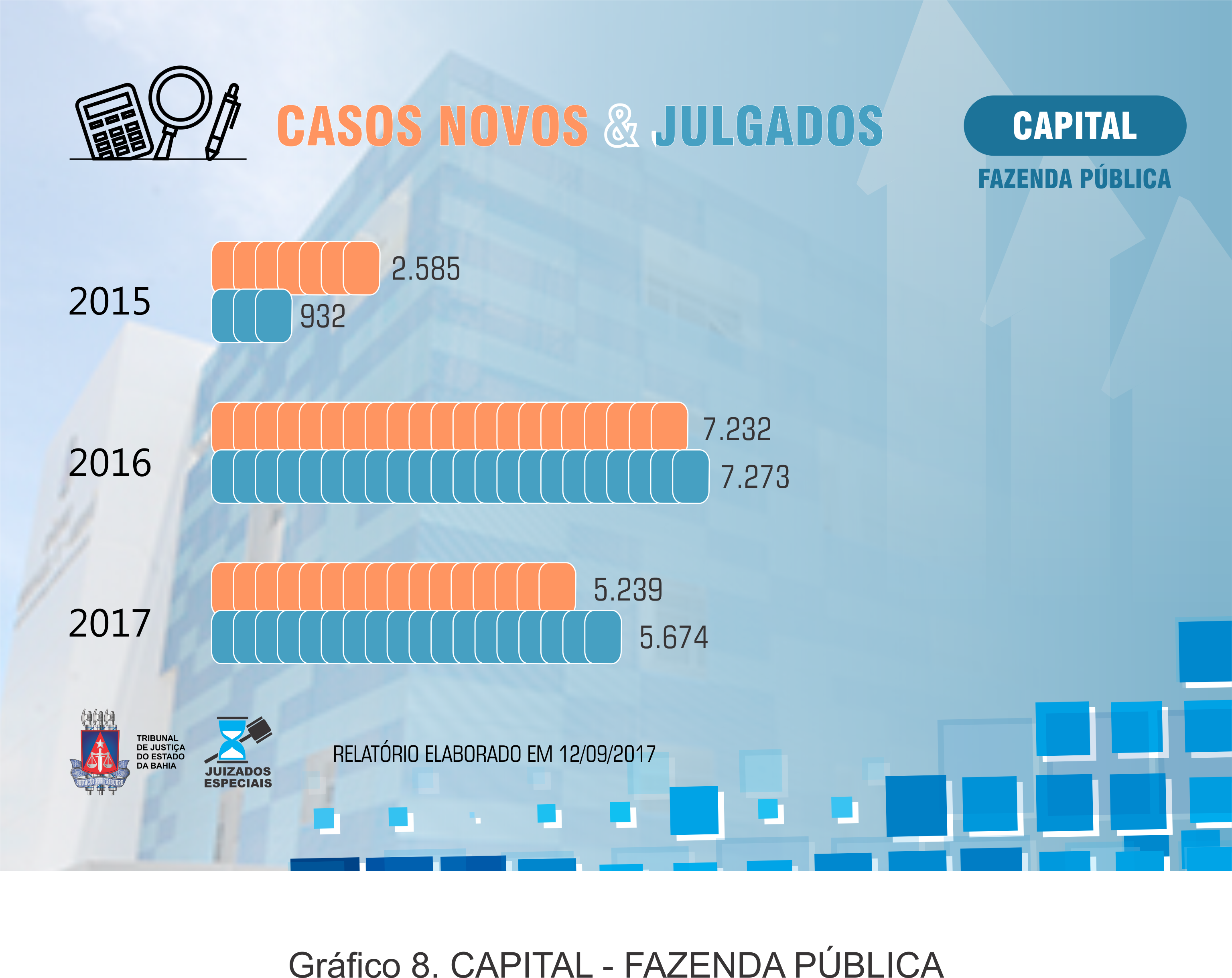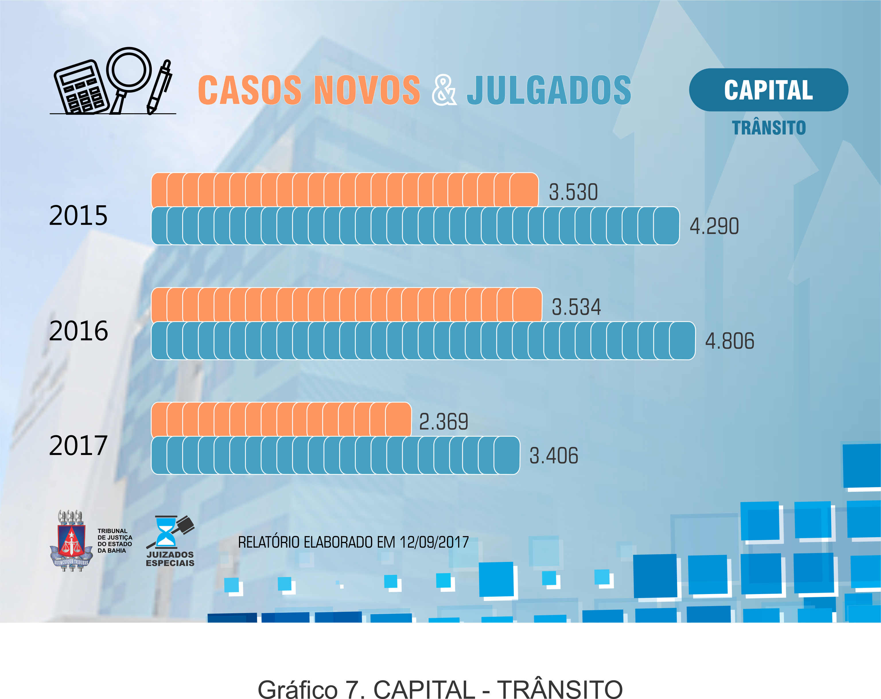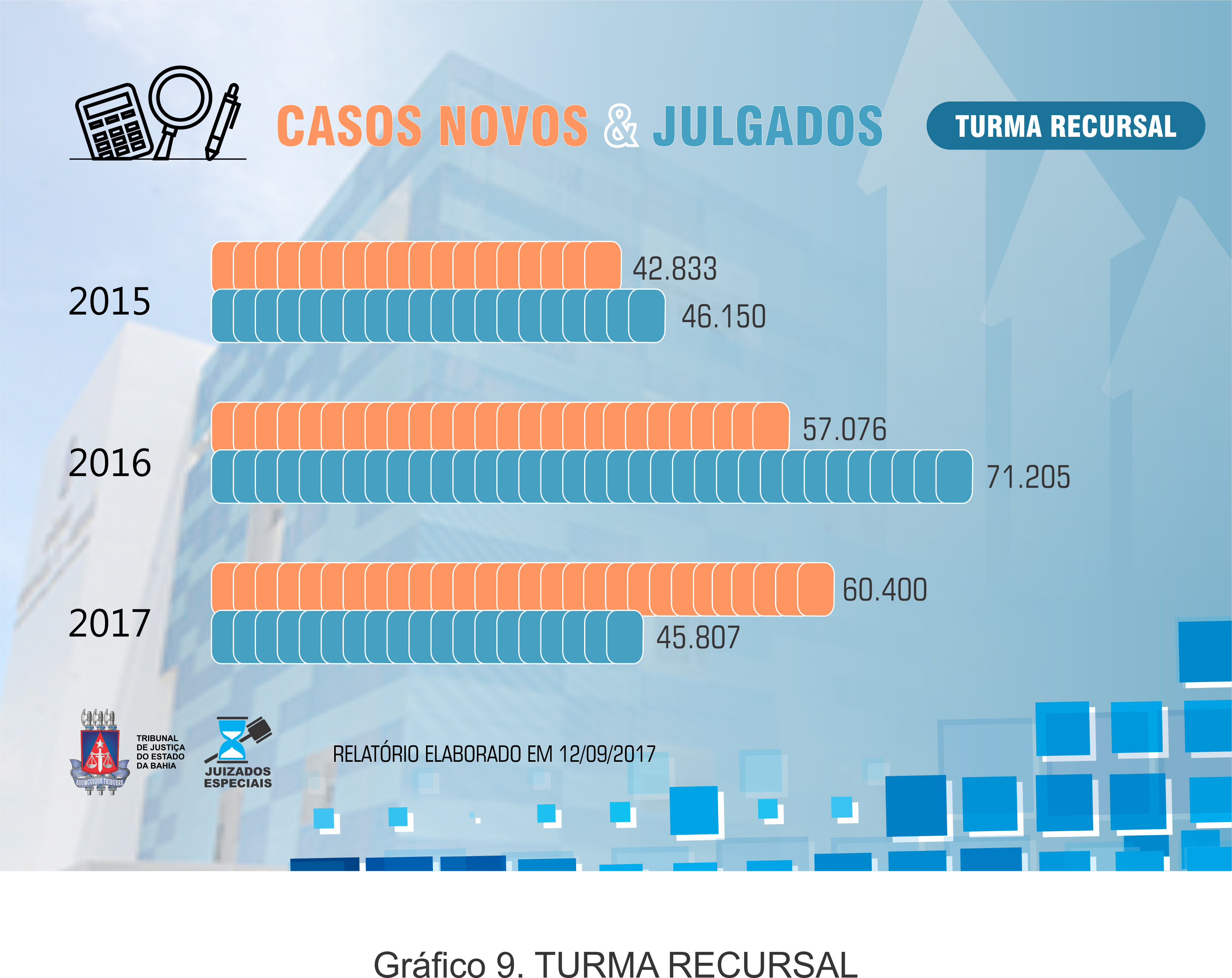 Abaixo os dados referentes ao Sistema dos Juizados Especiais, CASOS NOVOS & JULGADOS, anos de 2015, 2016 e 2017 (até a data 11 de setembro de 2017).