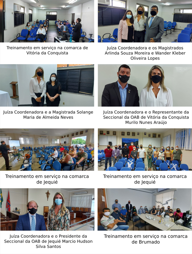 Em mais uma incursão pelo interior da Bahia, nessa última segunda-feira (29/11), a Coordenadora do Sistema Estadual dos Juizados Especiais, a Juíza Fabiana Pellegrino, visitou as Varas dos Juizados Especiais da Comarca de Vitória da Conquista e ministrou capacitação em serviço para servidores e magistrados. A programação das visitas institucionais contempla a comarca de Jequié hoje (30/11) e a comarca de Brumado amanhã (01/12).
