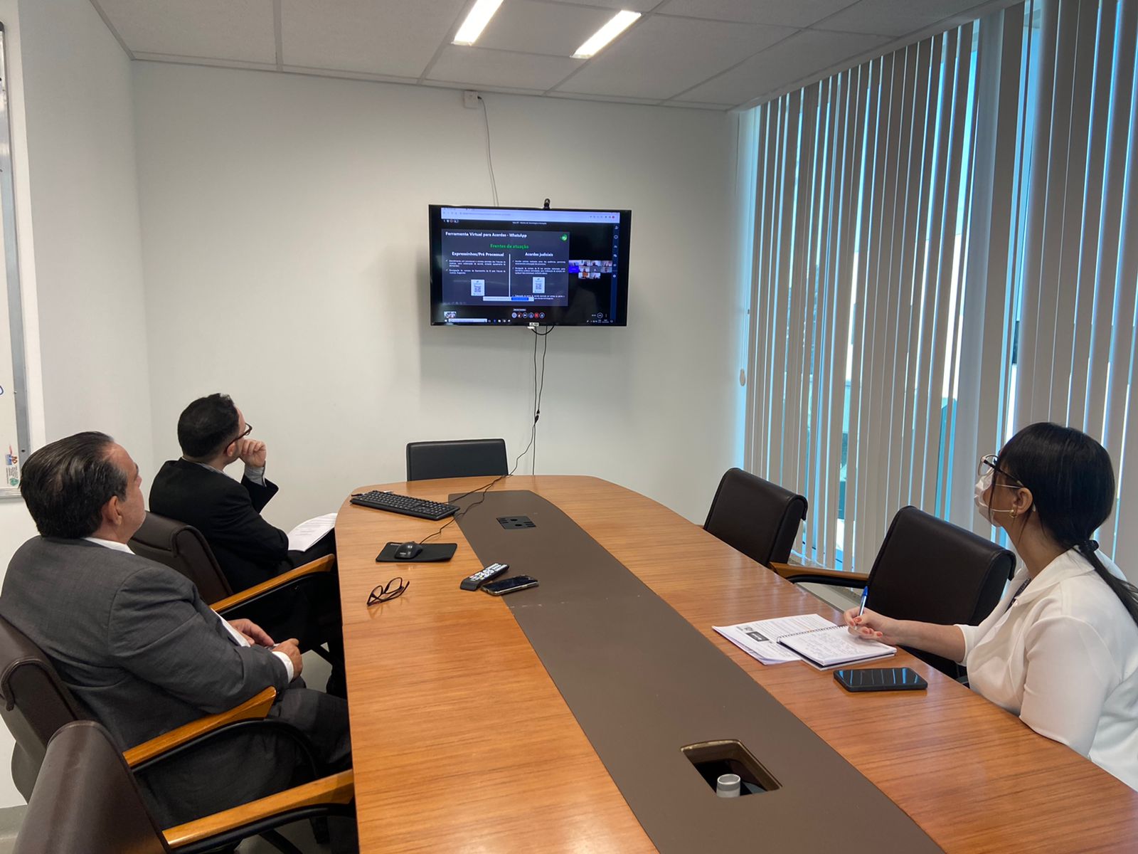 Participaram da reunião, além do Desembargador Coordenador, os servidores da COJE, Jonathas Carvalho e Maísa Cavalcanti, e os advogados do Grupo OI, Dra. Viviane Marques, Dra. Janaína Assis, Dra. Nathália Tavares, Dra. Adriana Velhote, Dra. Elen Souto e Dr. Renato Ozella.