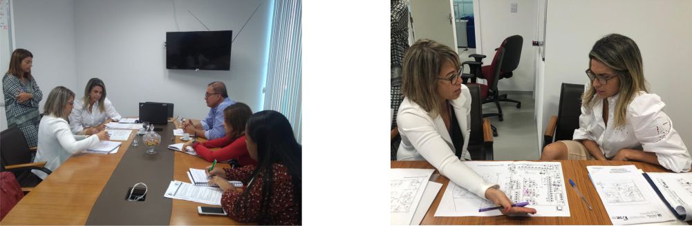 A Coordenadora Fabiana Pellegrino se reuniu, nesta quarta-feira (19/02), com a representante da Secretaria de Administração do Estado da Bahia (SAEB), coordenadora dos projetos arquitetônicos, Sayuri Maria Yamaguchi, para tratar da reestruturação dos layout existentes dos SAJ da Capital e Lauro de Freitas, atualmente localizados nos espaços dos Serviços de Atendimento do Cidadão (SAC).