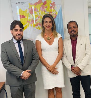 Nessa reunião, estiveram o Superintendente do Procon, Dr. Filipe Vieira (à esquerda), e o Diretor de Ações Educativas do Procon, Paulo Cesar Teixeira (à direita).