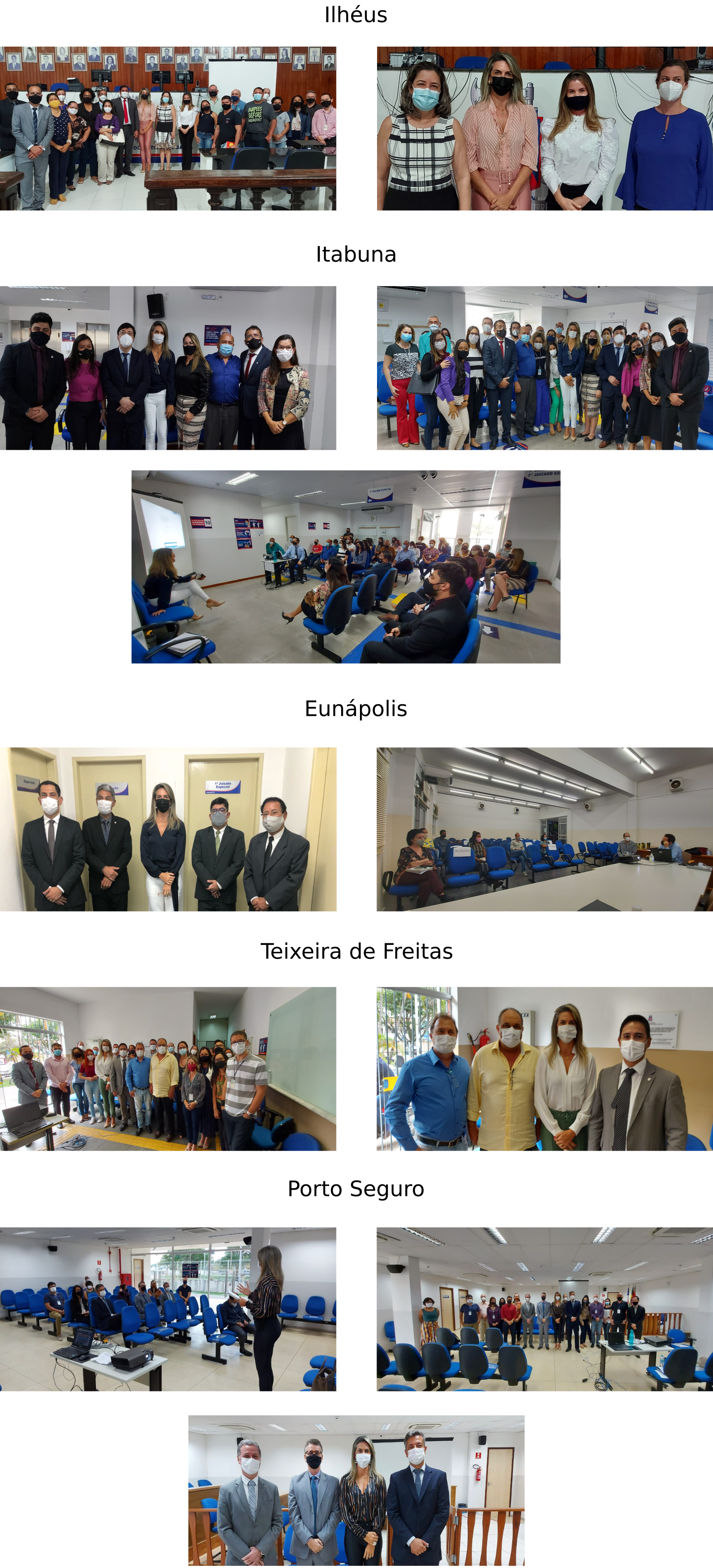 No primeiro dia, a Juíza Coordenadora esteve na Comarca de Ilhéus, onde se reuniu com as Magistradas Raquel François, Adriana Lira e Théa Cristina, titulares das Varas do Sistema dos Juizados, com o Defensor Público Dr. Leonardo Sales, bem como com Presidente da OAB Subseção Ilhéus-BA, Dr. Martone Costa Maciel, o Presidente da Comissão dos Juizados Especiais da Subseção Ilhéus-BA, Dr. Luciano Oliveira da Silva, e o Conselheiro Seccional da OAB Bahia, Dr. Jackson Cupertino.
