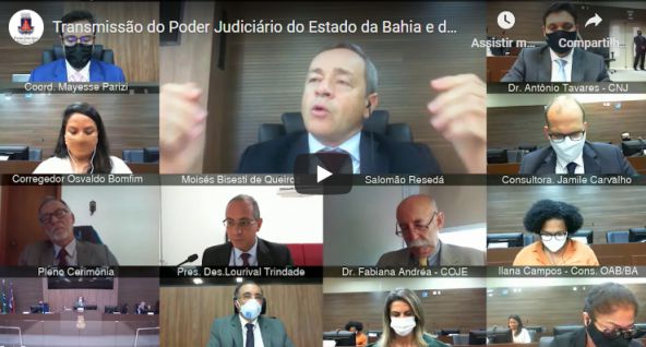 Na manhã da última sexta-feira (11), o Poder Judiciário da Bahia (PJBA) formalizou a parceria com o Conselho Nacional de Justiça (CNJ) para o desenvolvimento, no estado, do Programa Fazendo Justiça. Além disso, na oportunidade, o PJBA efetivou sua adesão ao Juízo 100% Digital. A cerimônia foi realizada na sala de sessões do Tribunal Pleno da Corte baiana e transmitida virtualmente pelo canal do PJBA no Youtube.