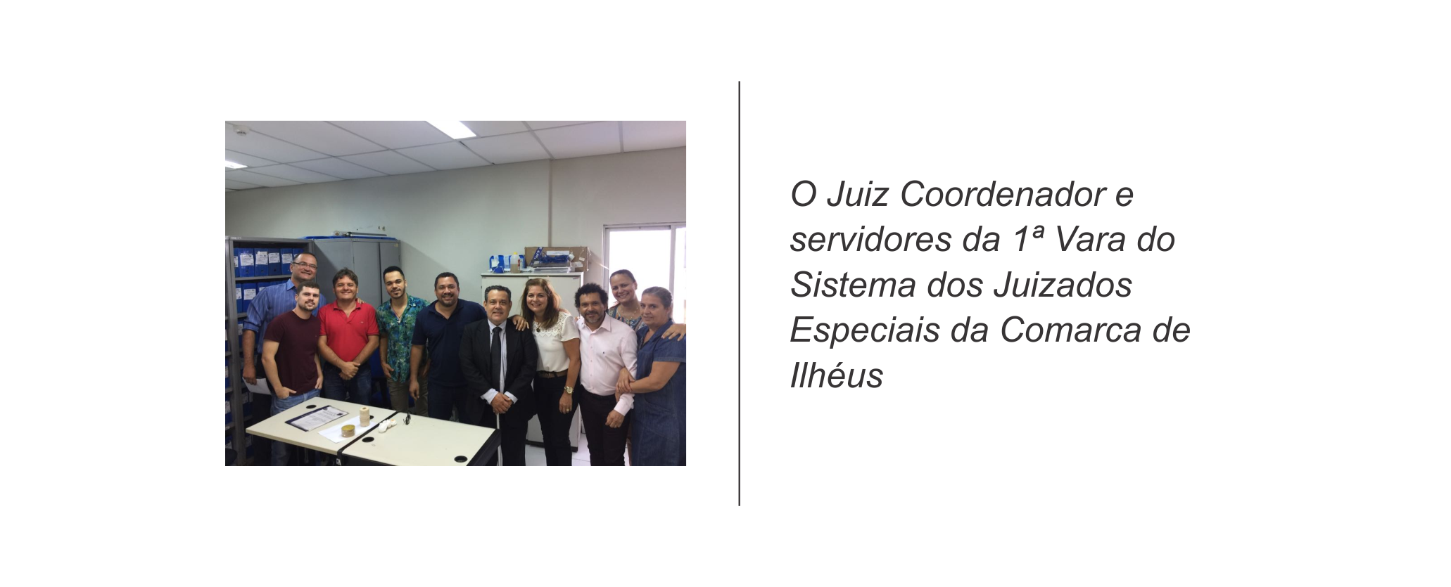 Dando continuidade às inspeções nas unidades do Sistema dos Juizados Especiais do Interior do Estado, o Juiz Coordenador Paulo Alberto Nunes Chenaud visitou na manhã de hoje, sendo recebido pelos servidores, a 1ª Vara do Sistema dos Juizados Especiais da Comarca de Ilhéus, comarca onde permaneceu no período de 1994 até novembro de 2002.