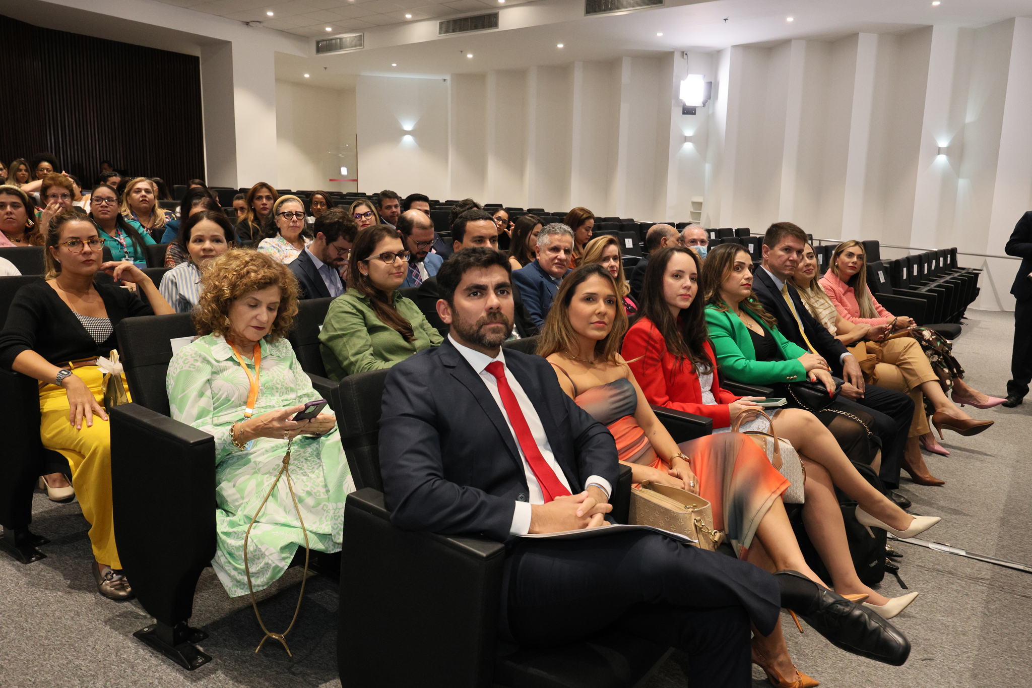 Descrição da imagem: Foto da plateia no Auditório Desembargador Olny Silva, no edifício-sede do TJBA {fim da descrição}.