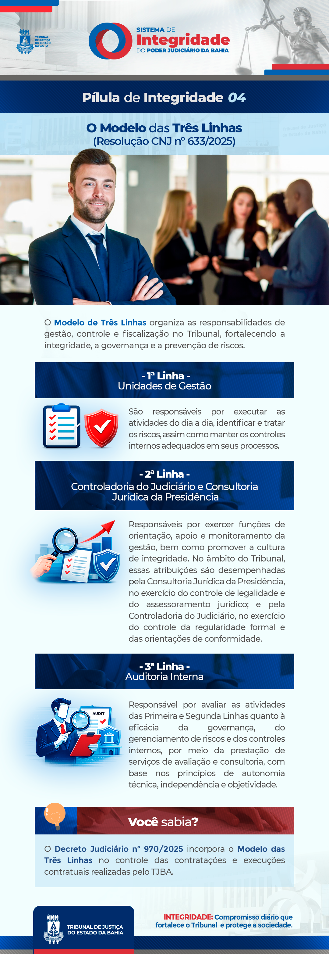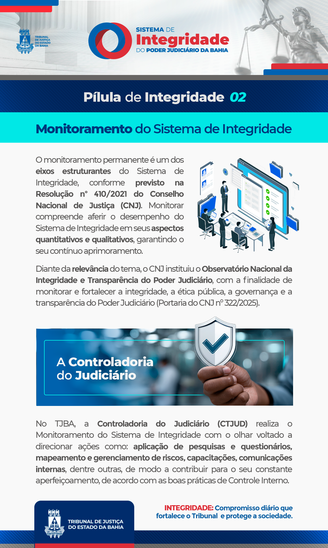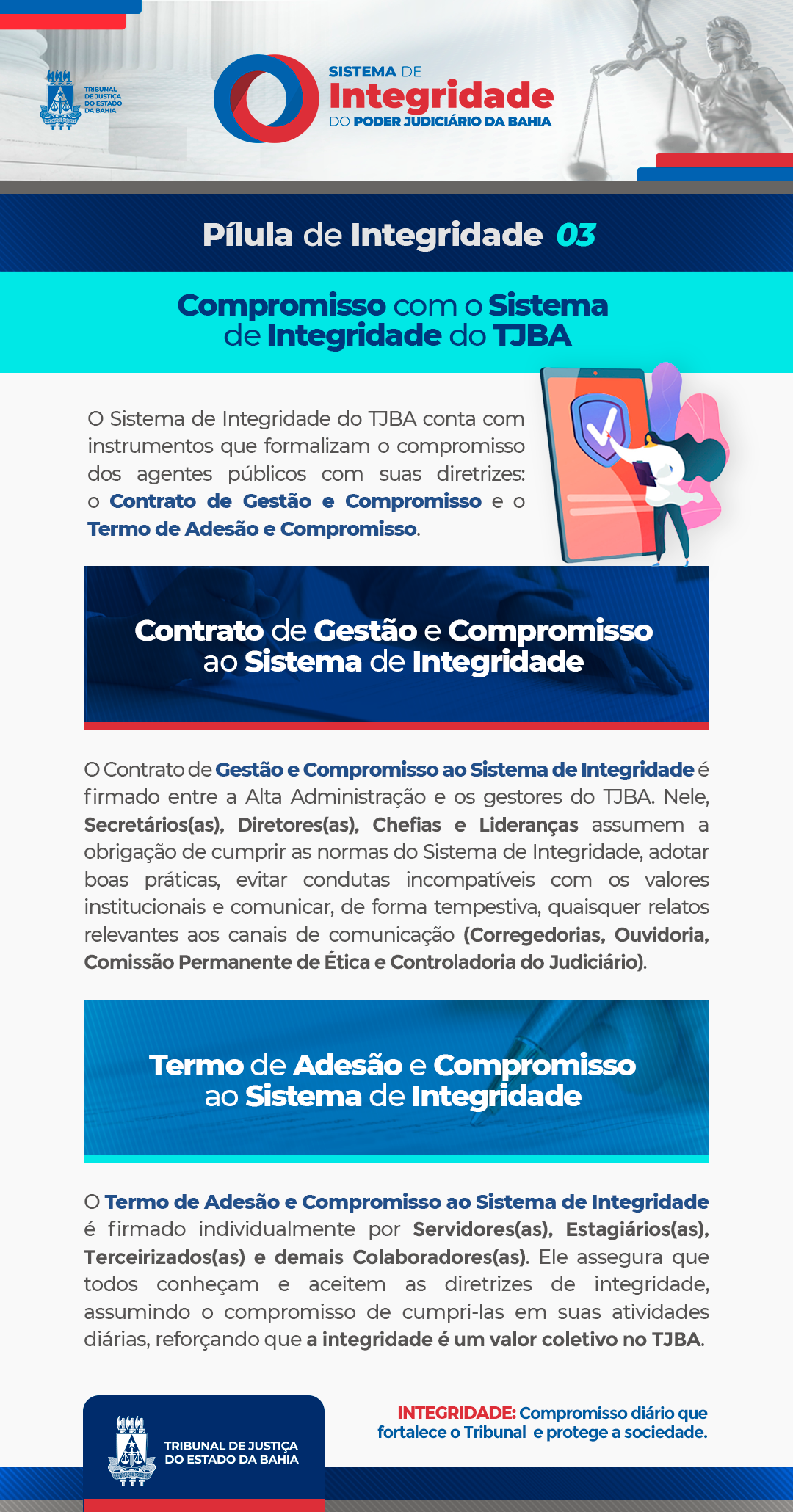 A Pílula de Integridade é um periódico voltado ao Sistema de Integridade do Tribunal de Justiça da Bahia (TJBA), com conteúdos relevantes e acessíveis sobre ética, transparência e responsabilidade na atuação do Poder Judiciário.