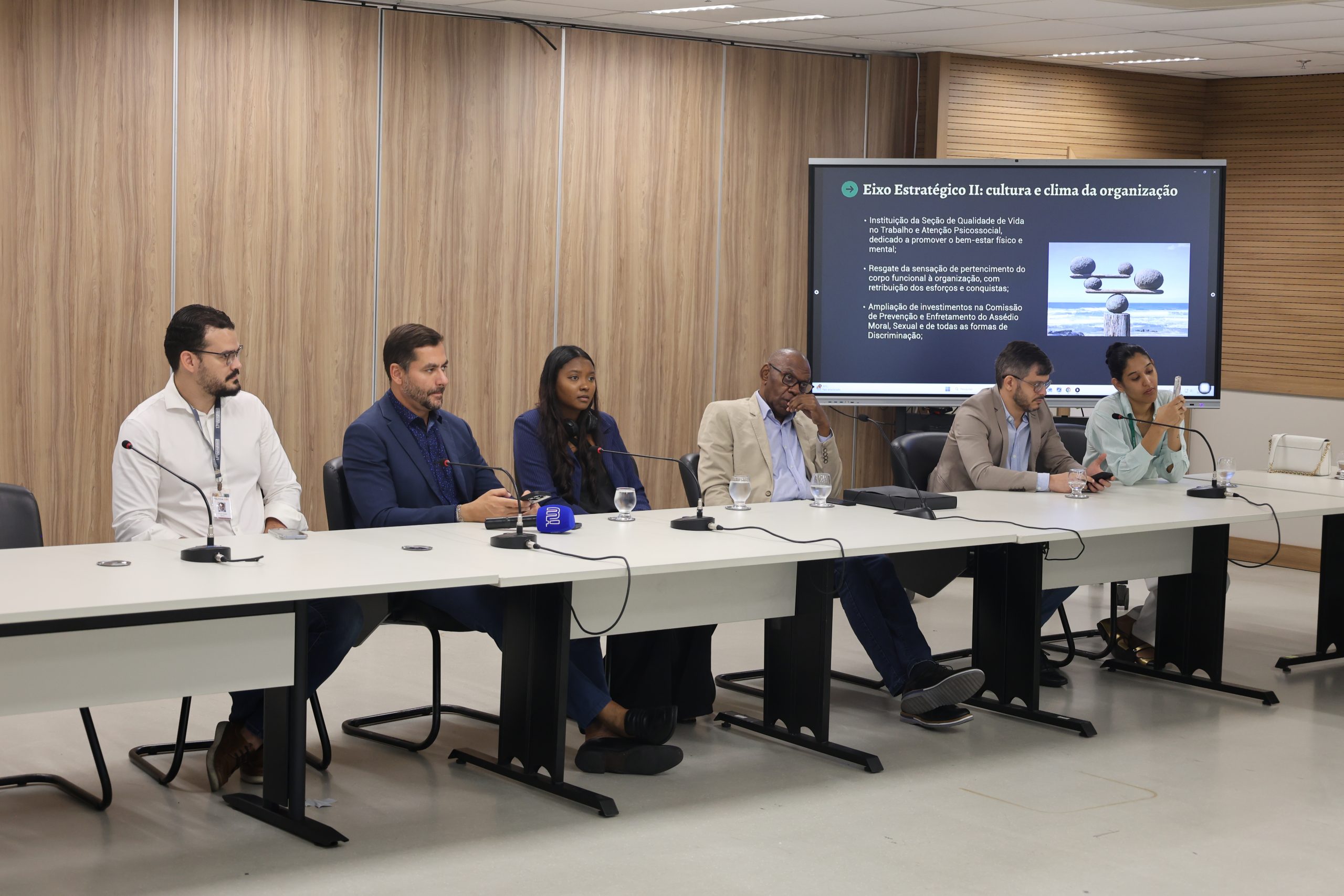 Os principais eixos da gestão, também, foram assuntos em destaque: tecnologia e inovação; acesso à justiça; valorização das carreiras; cultura e clima da organização; governança institucional; atualização da estrutura administrativa e judicial; profissionalização da comunicação; entre outros.