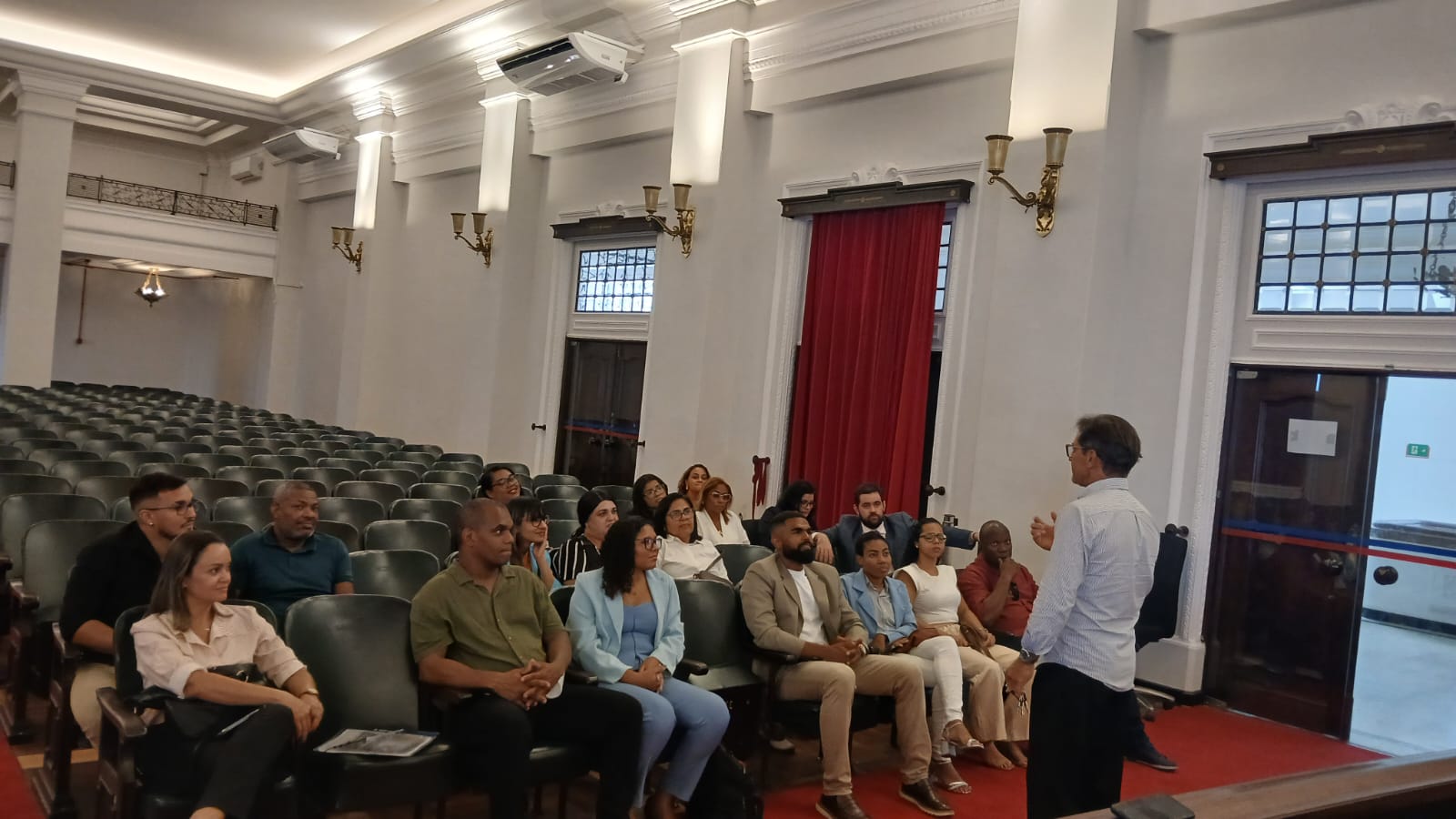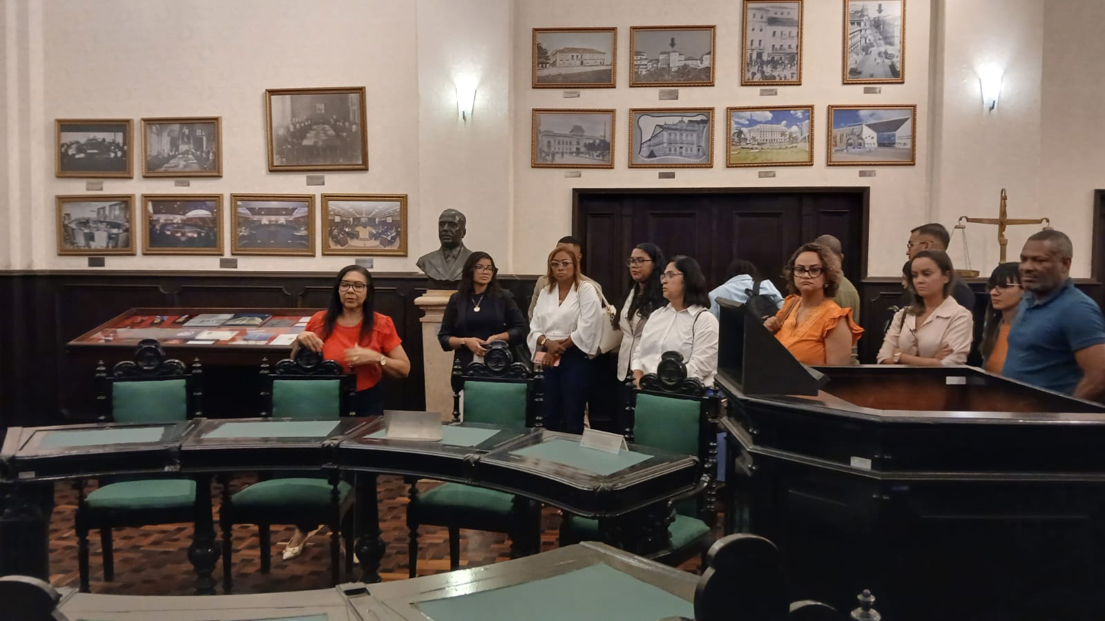 No turno da tarde, a programação continuou no Fórum Ruy Barbosa, prédio histórico que abriga unidades do primeiro grau e que integra a memória institucional do Tribunal. Os estudantes conheceram as instalações e tiveram contato com o funcionamento das unidades judiciais e administrativas, entendendo melhor como ocorre o atendimento ao público e a tramitação dos processos no dia a dia do fórum.