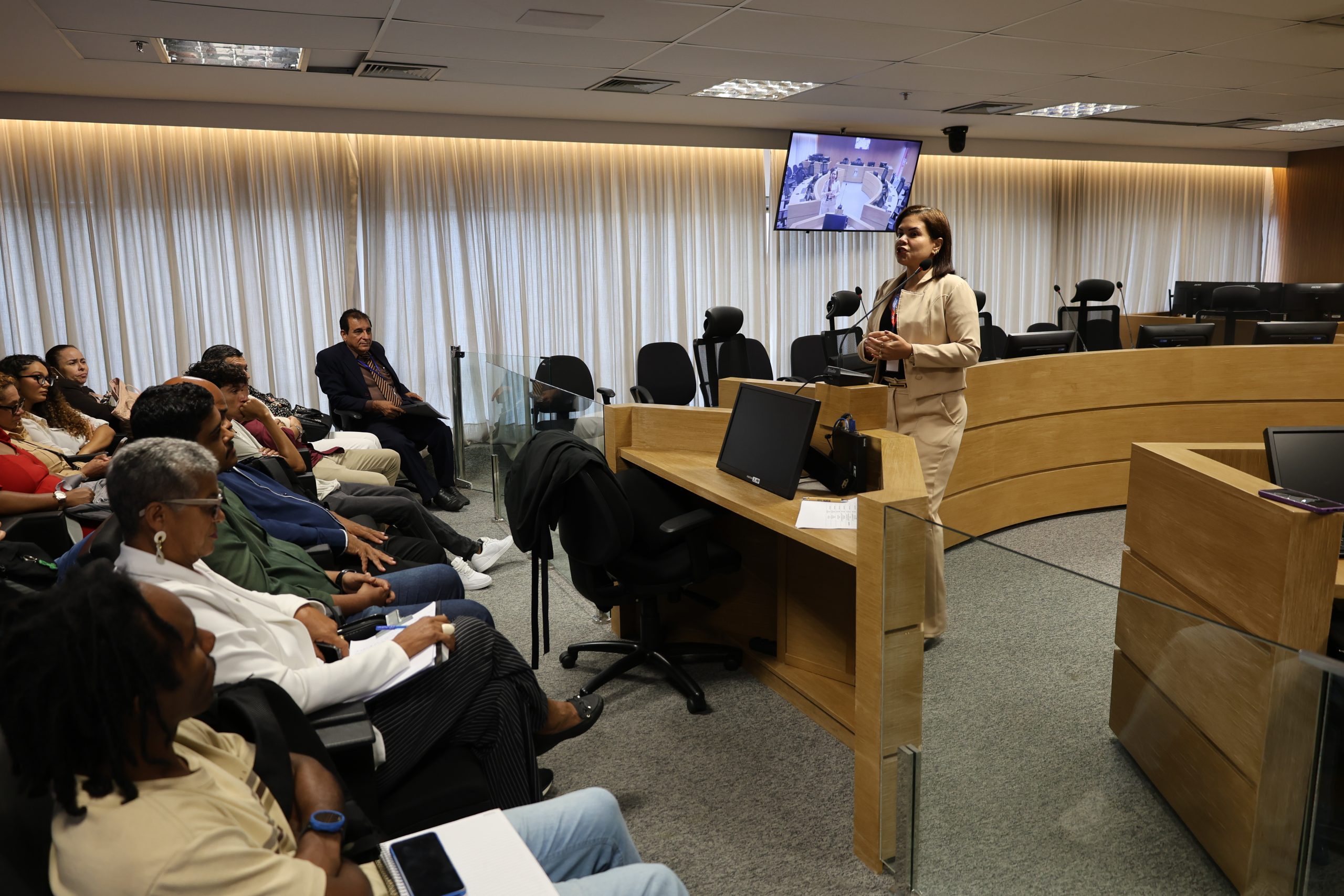A Diretora de Distribuição do 2º Grau, Mariana Nunes, explicou aos estudantes como funciona a atuação do setor. “Para muitos deles, é o primeiro contato efetivo fora do ambiente de faculdade. Nessa oportunidade que eles conhecem fisicamente as instalações, eles também têm um representante de cada órgão. E pela parte da distribuição, eu procuro falar dos nossos tipos de processos que circulam por aqui, da forma de julgamento, das atribuições da Diretoria de Distribuição”, comentou.