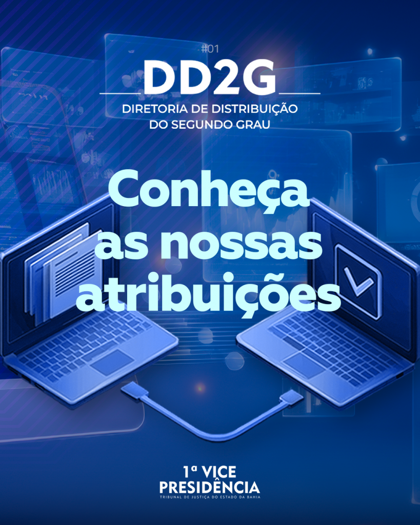 A Diretoria de Distribuição do 2º Grau (DD2G) gerencia as atividades relacionadas ao cadastramento, ao exame de prevenção e à distribuição e redistribuição de processos judiciais na segunda instância, observadas as regras de competência estabelecidas na legislação e no Regimento Interno deste Tribunal.