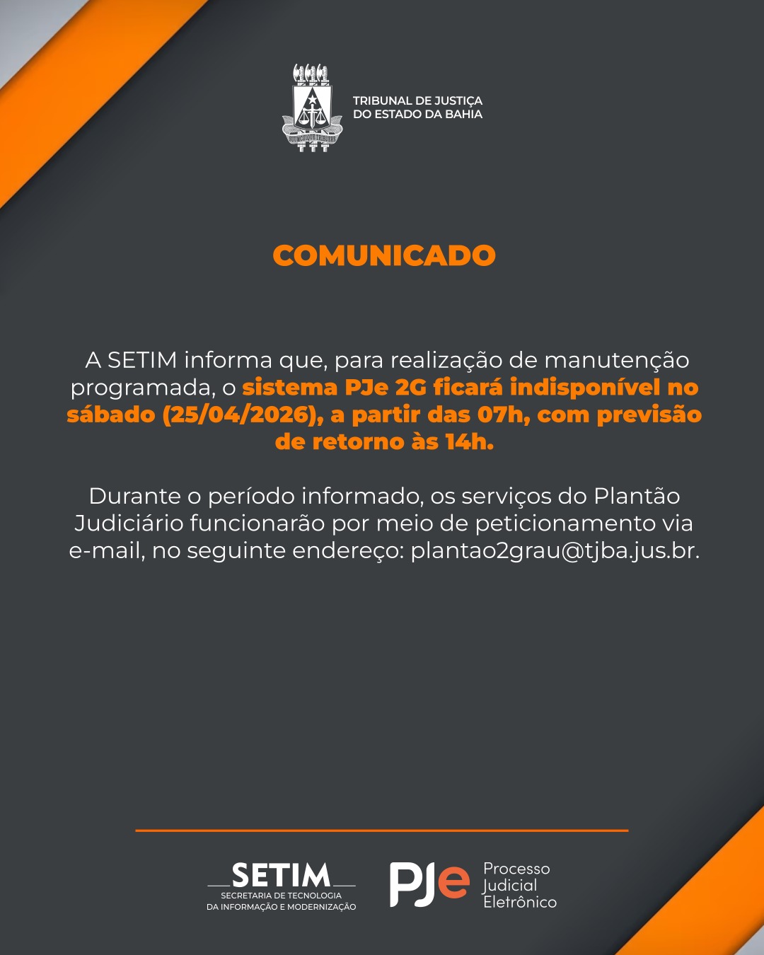 A Secretaria de Tecnologia da Informação e Modernização (SETIM) informa que a manutenção programada do sistema PJe, anteriormente prevista para […]