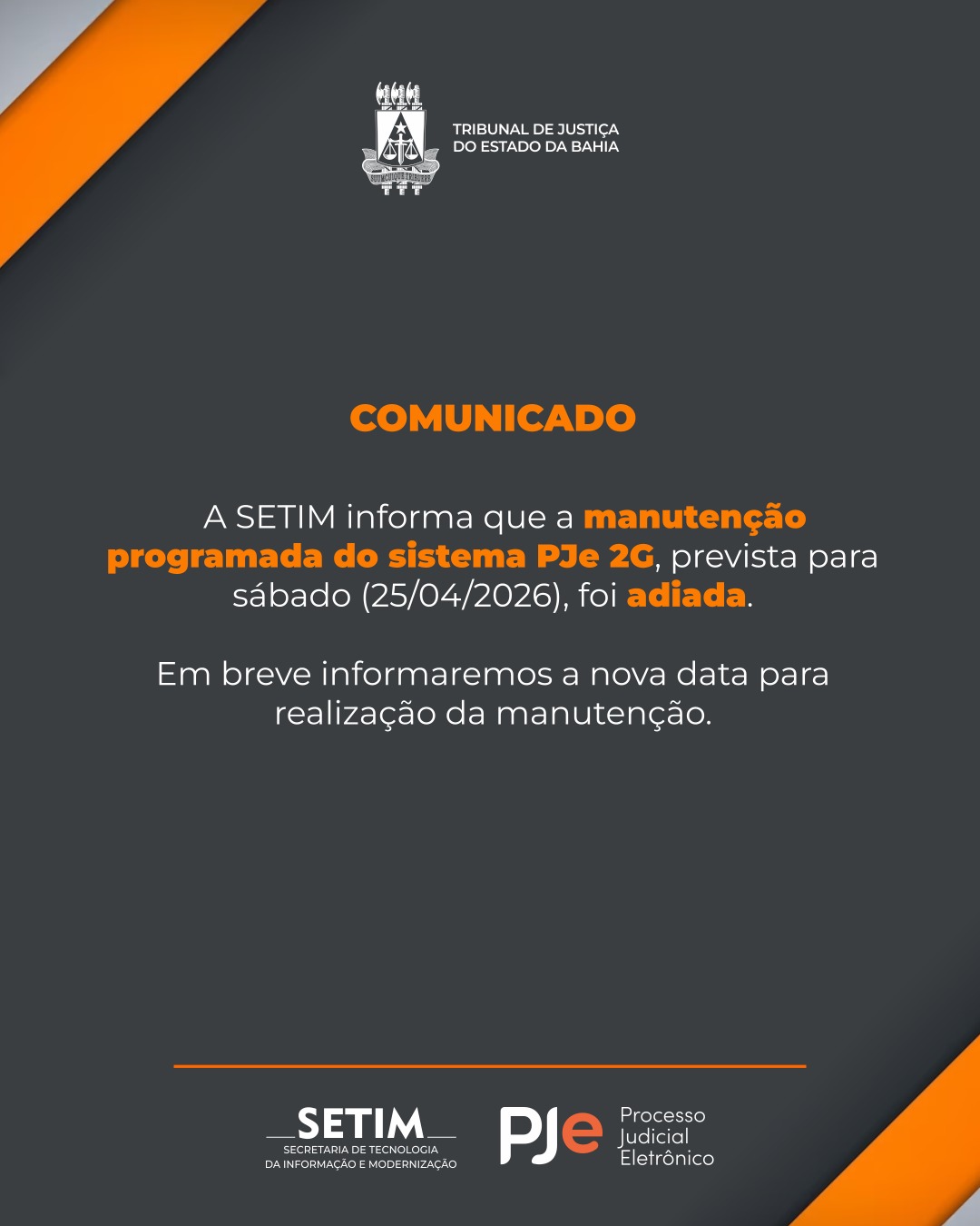 MANUTENÇÃO DO PJe É ADIADA
