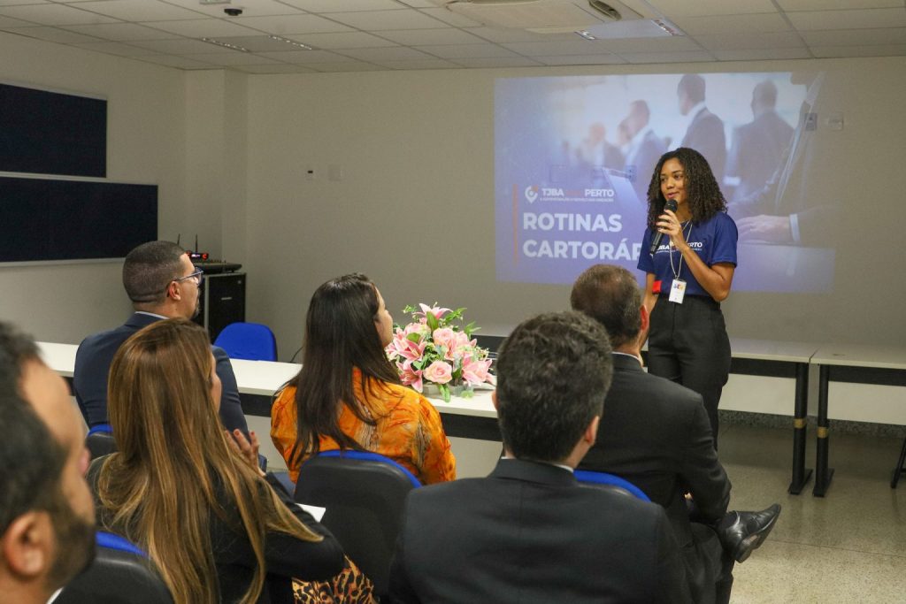 Com o tema “Estratégias para ampliar a produtividade com o uso da Tecnologia da Informação”, a Servidora Letícia Lima, lotada na Diretoria de Primeiro Grau, apresentou estratégias voltadas ao melhor proveito de sistemas como o PJE+R e o Exaudi e deu outras instruções para otimizar a rotina cartorária, a exemplo da utilização do Painel de Priorização de Processos (PPP) que foi lançado em maio, durante a primeira edição do TJBA Mais Perto, em Salvador. A ferramenta ranqueia os processos em grau de importância, tendo como parâmetro as metas estabelecidas pelo Conselho Nacional de Justiça no Prêmio CNJ de Qualidade.