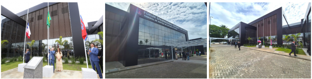 Cooperação – Foram construídas, ainda, quadras esportivas de areia no entorno da nova edificação, repassadas ao município de Ilhéus por meio de um termo de cessão assinado durante a solenidade. Trata-se não apenas de um legado material à comunidade, mas de um símbolo de integração social e valorização do espaço público. O terreno do antigo fórum, no bairro Cidade Nova, também foi cedido ao município.