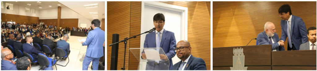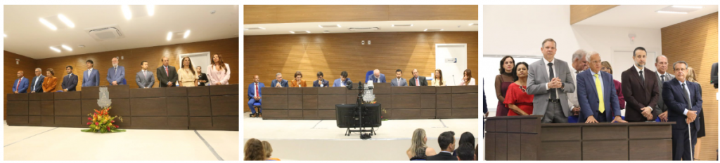 “Realmente eu contrubuí, mas contribuí pouco, para remover alguns obstáculos. O êxito desta concretude respeitante à inauguração do fórum é da Desembargadora Cynthia. Este é o melhor de todos os fóruns do interior da Bahia. O povo de Ilhéus merecia uma obra de tamanha envergadura. Uma terra de tradição como esta não merecia um fórum velho como tinha”, declarou o Desembargador Nilson Castelo Branco, que foi Presidente do TJBA no biênio 2022-2024 e responsável por lançar a pedra fundamental da construção nos dias finais do seu mandato. Durante a solenidade de inauguração, apesar da oratória capaz de envolver a plateia durante todo o seu pronunciamento, ele fez questão de ler o discurso que havia sido preparado pela Desembargadora Cynthia Resende.