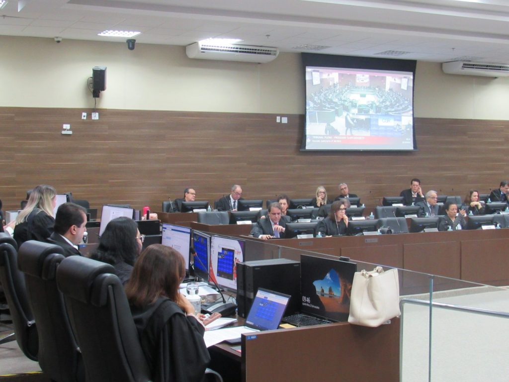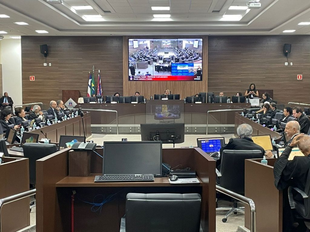 Descrição da imagem: Desembargadores(as) reunidos(as) no Tribunal Pleno [fim da descrição].