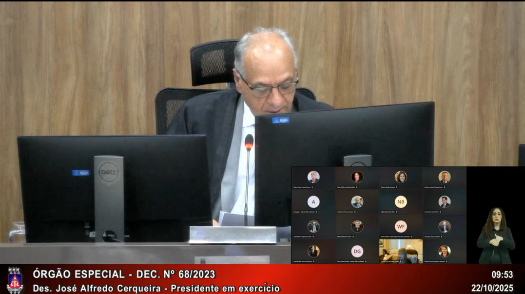 O Desembargador José Alfredo Cerqueira da Silva, 2º Vice-Presidente do Tribunal de Justiça da Bahia (TJBA), está presidindo a Sessão do Órgão Especial desta quarta-feira (22/10/25).